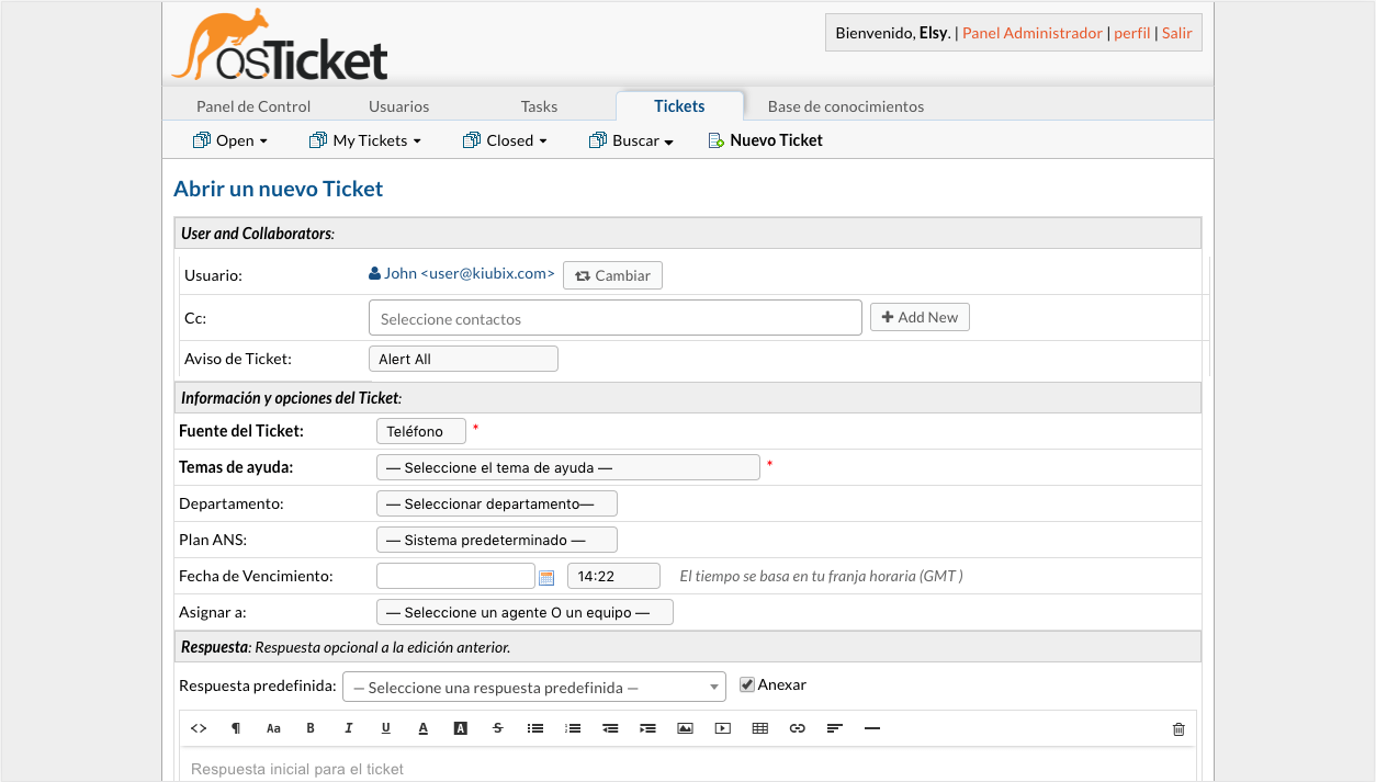 Establece acciones como rechazo de tickets, asignación de departamento o incluso enviar una respuesta automática.